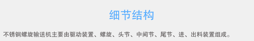 不鏽鋼螺旋輸送機主要由(yóu)驅動裝置、螺(luó)旋、頭節、中間節、尾節、進、出料裝置組成。