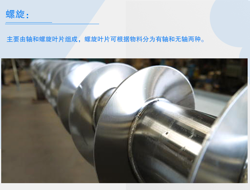 螺旋:主要由軸和螺(luó)旋葉片組成,螺旋葉片可根據物料(liào)分為有軸和無軸兩種。